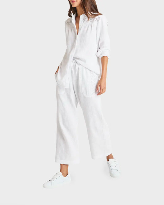 Kit Eyelet Gauze Pant| White