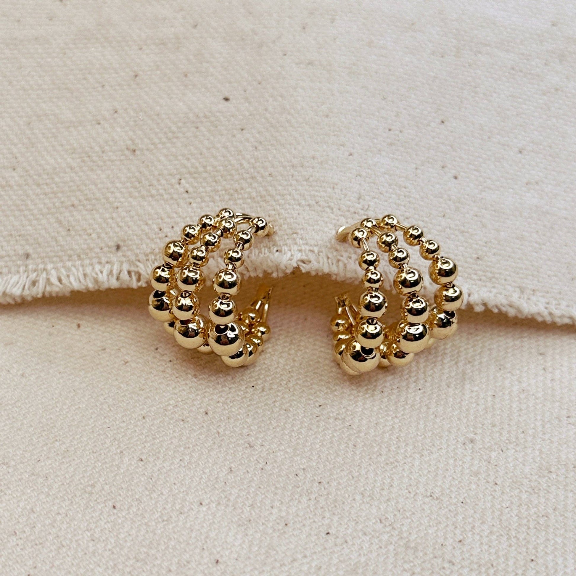 18k Gold Filled Triple Line Beaded C Hoop Earrings