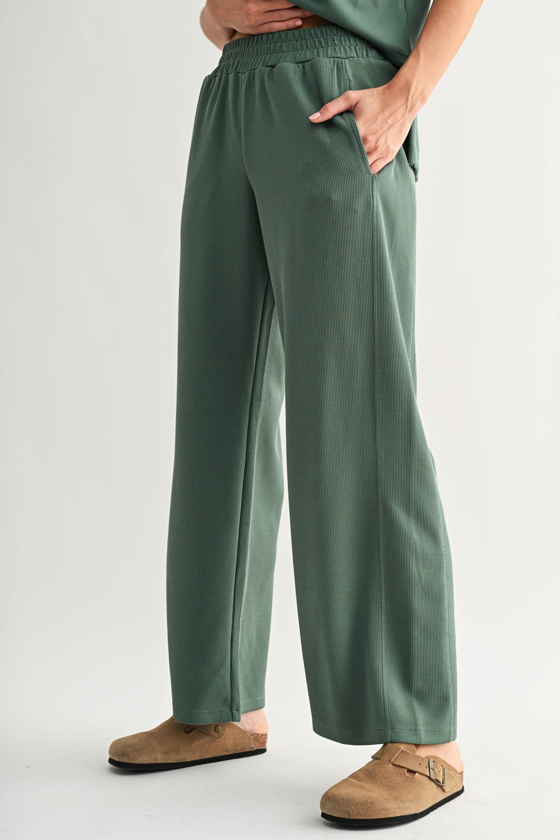 Flowy, flattering, and effortlessly chic—the Luxe Sol Rib Wide-Leg Pants are your go-to for elevated comfort. Crafted from buttery-soft, sand-washed rib fabric, these pants offer a rich texture with depth and dimension. The elastic waistband ensures a perfect fit, while the side seam paneling creates a long, elongated silhouette. Designed for versatility, these wide-leg pants pair seamlessly with the matching Sol Rib Top for a sophisticated, cozy set. 68% polyester 26% modal 6% spandex