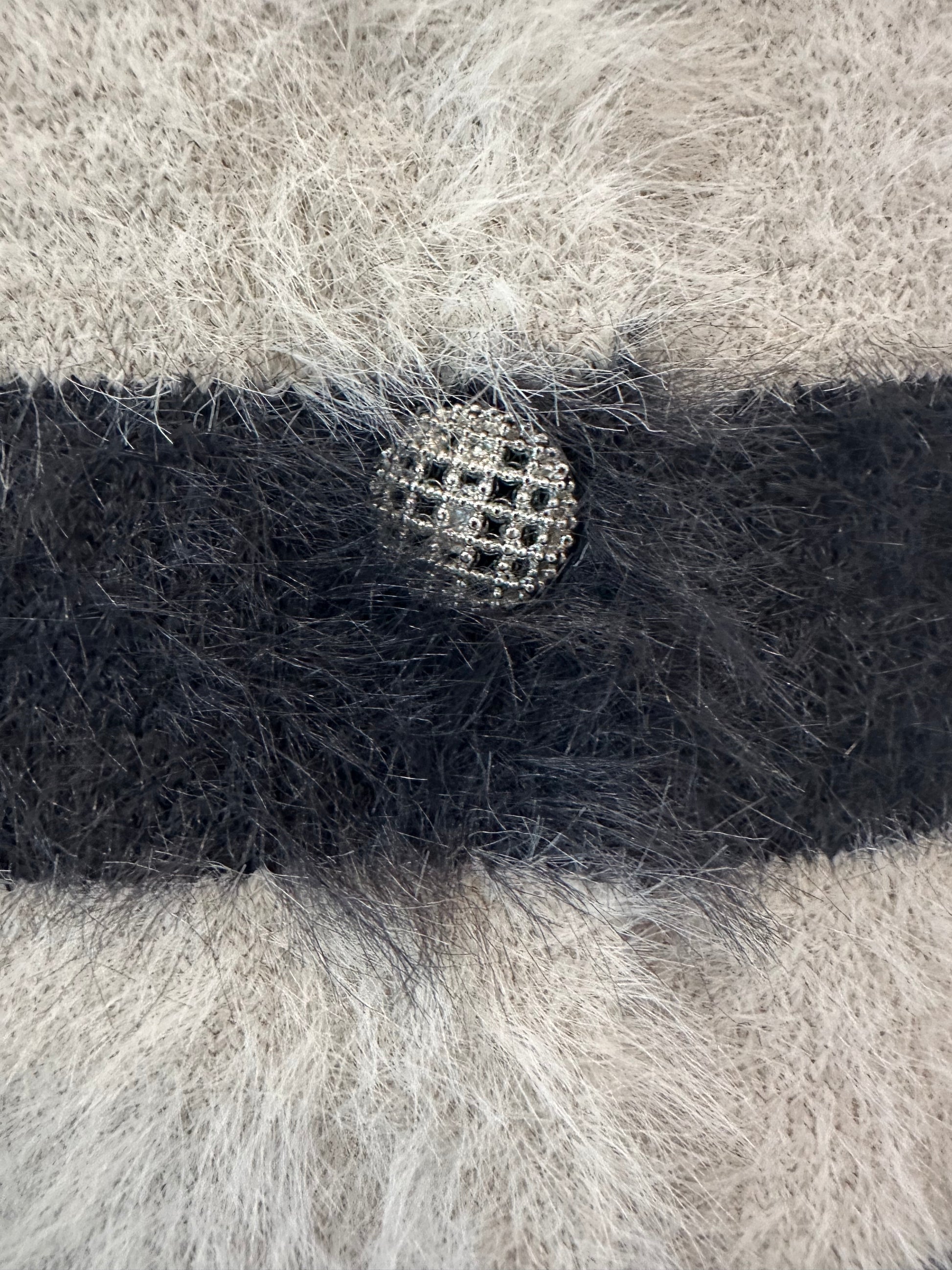 Introducing the Minnie Stripe Sweater, a Parisian-inspired piece that exudes elegance and sophistication. Boasting a classic black and white stripe design, this cozy sweater is perfect for any occasion. Its lightweight fabric and exquisite woven buttons add a touch of luxury to your wardrobe. Elevate your style with this must-have sweater.