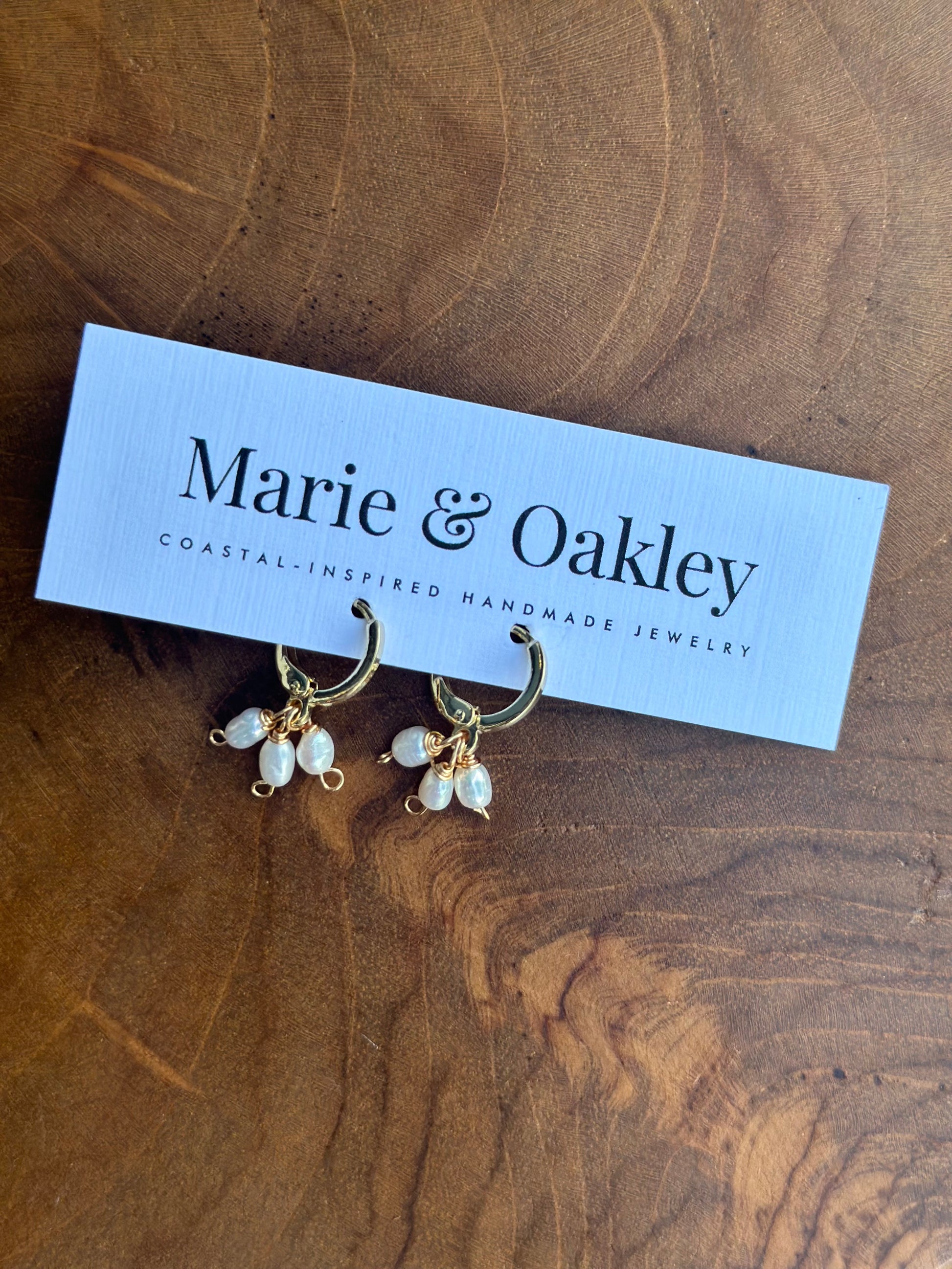 Elevate your earring game with Ophelia Huggies! Featuring a tiny pearl cluster on the huggie clasp, these 14k gold filled hoops are perfect for first or second holes. Add a touch of elegance to any outfit and feel confident and stylish.