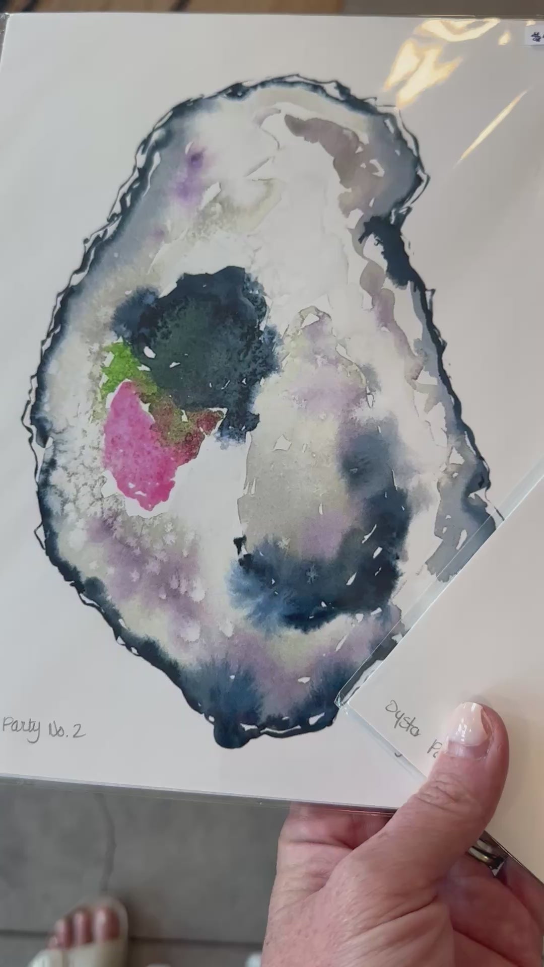 Enhance your home decor with this beautiful 8 x 10 inch oyster print. Hand-painted by a local Wilmington artist, this original water color piece captures the intricate beauty of these ocean treasures. Showcase the unique charm of coastal living with this stunning addition to any room.