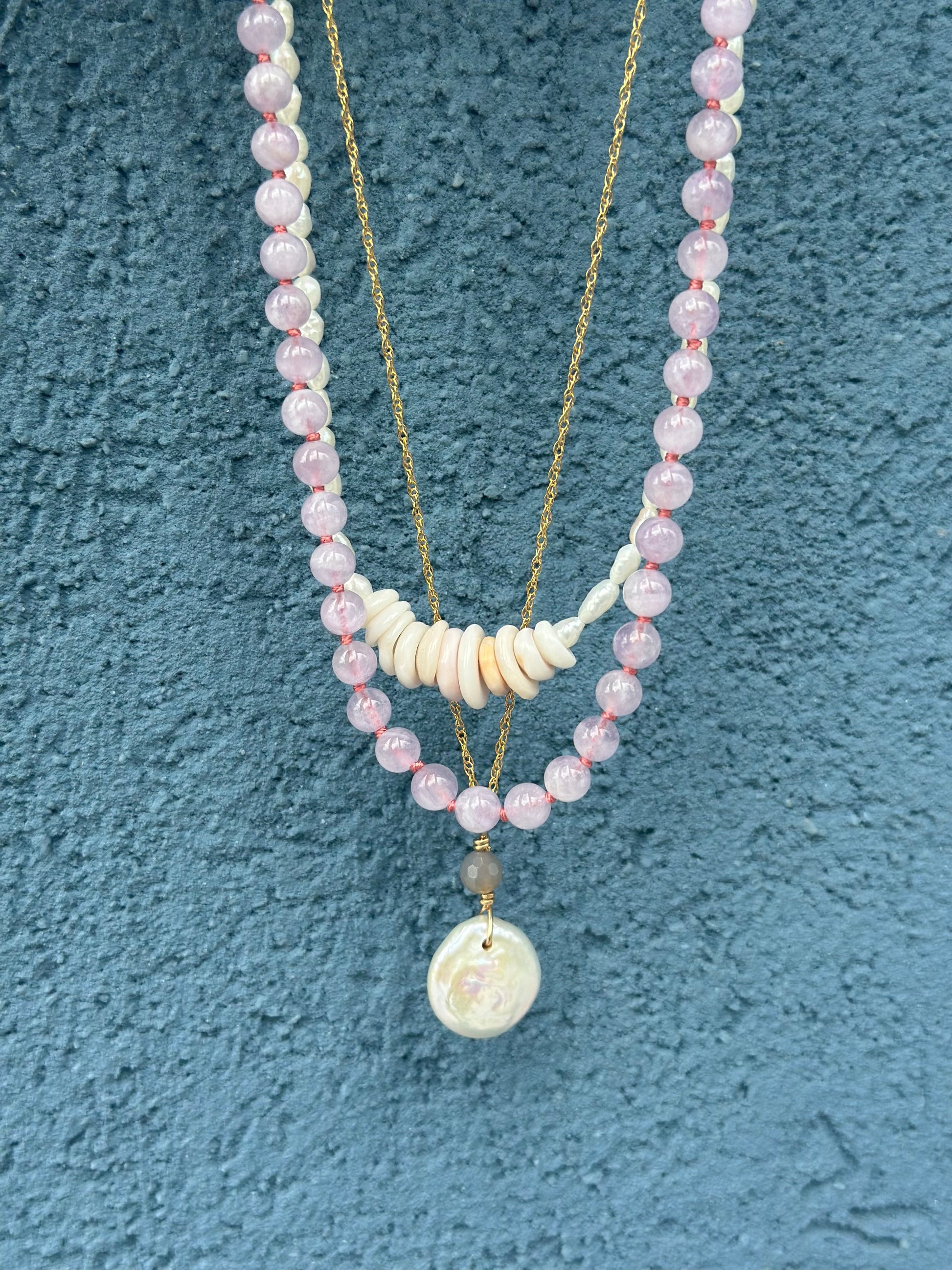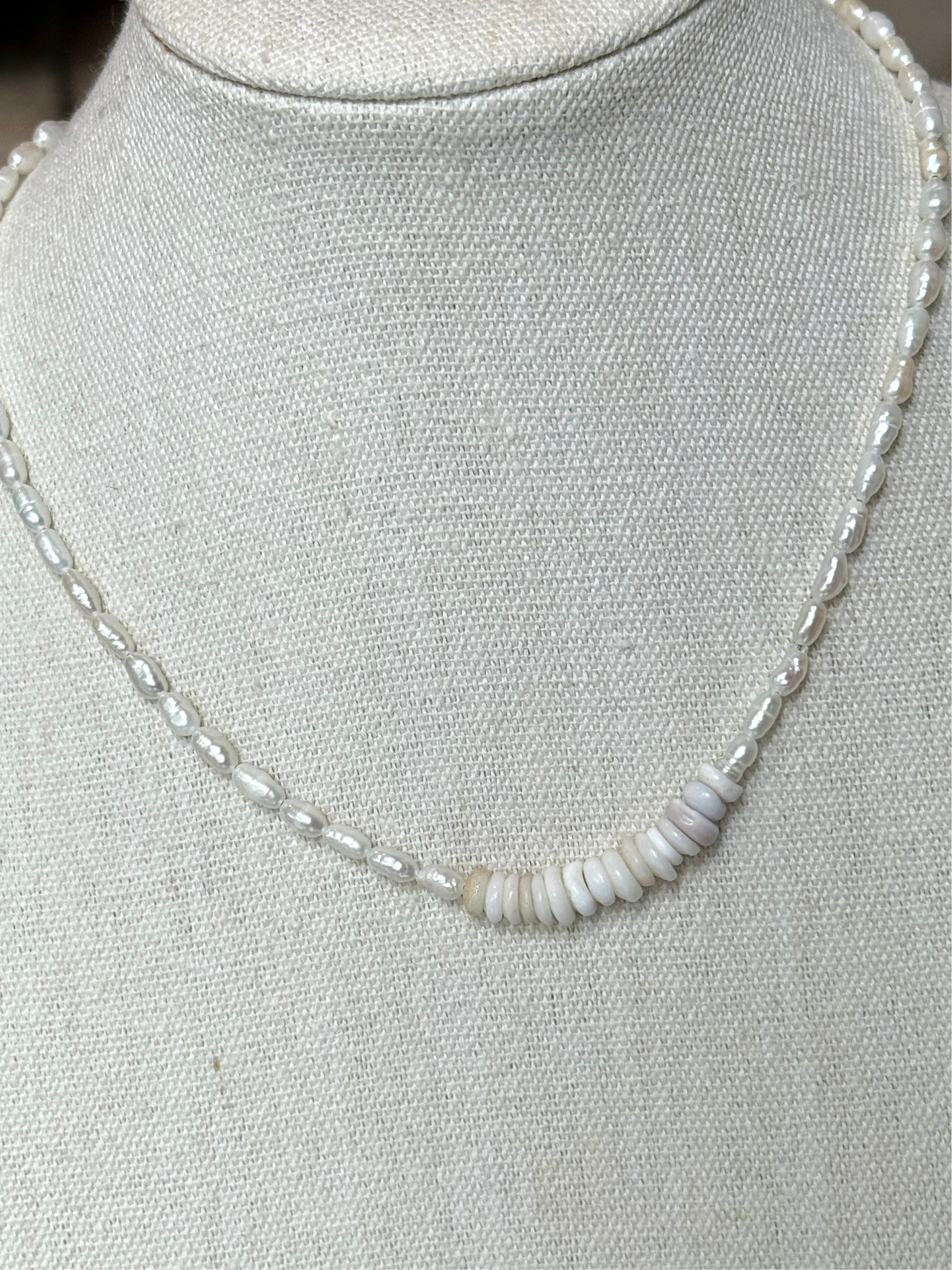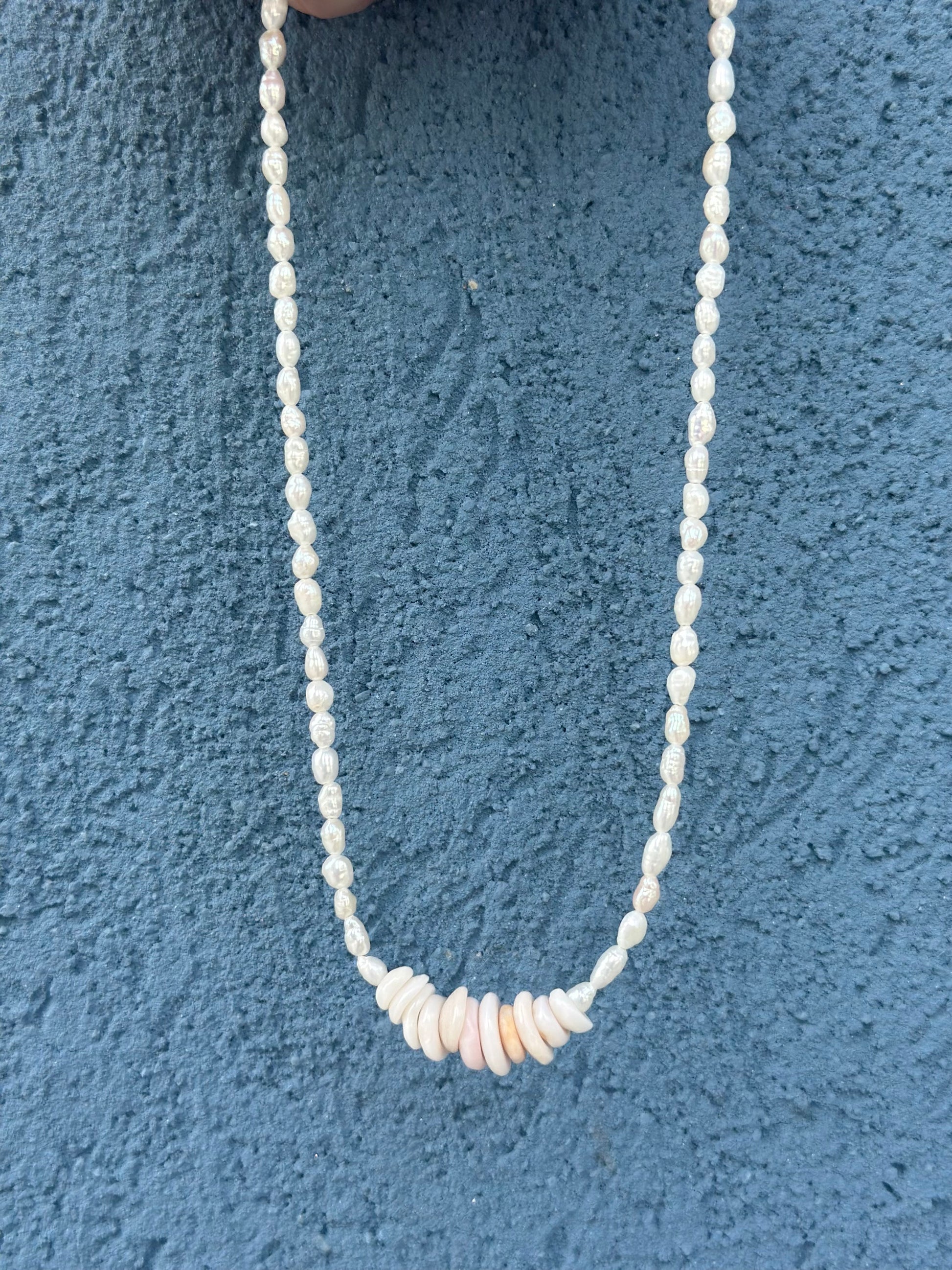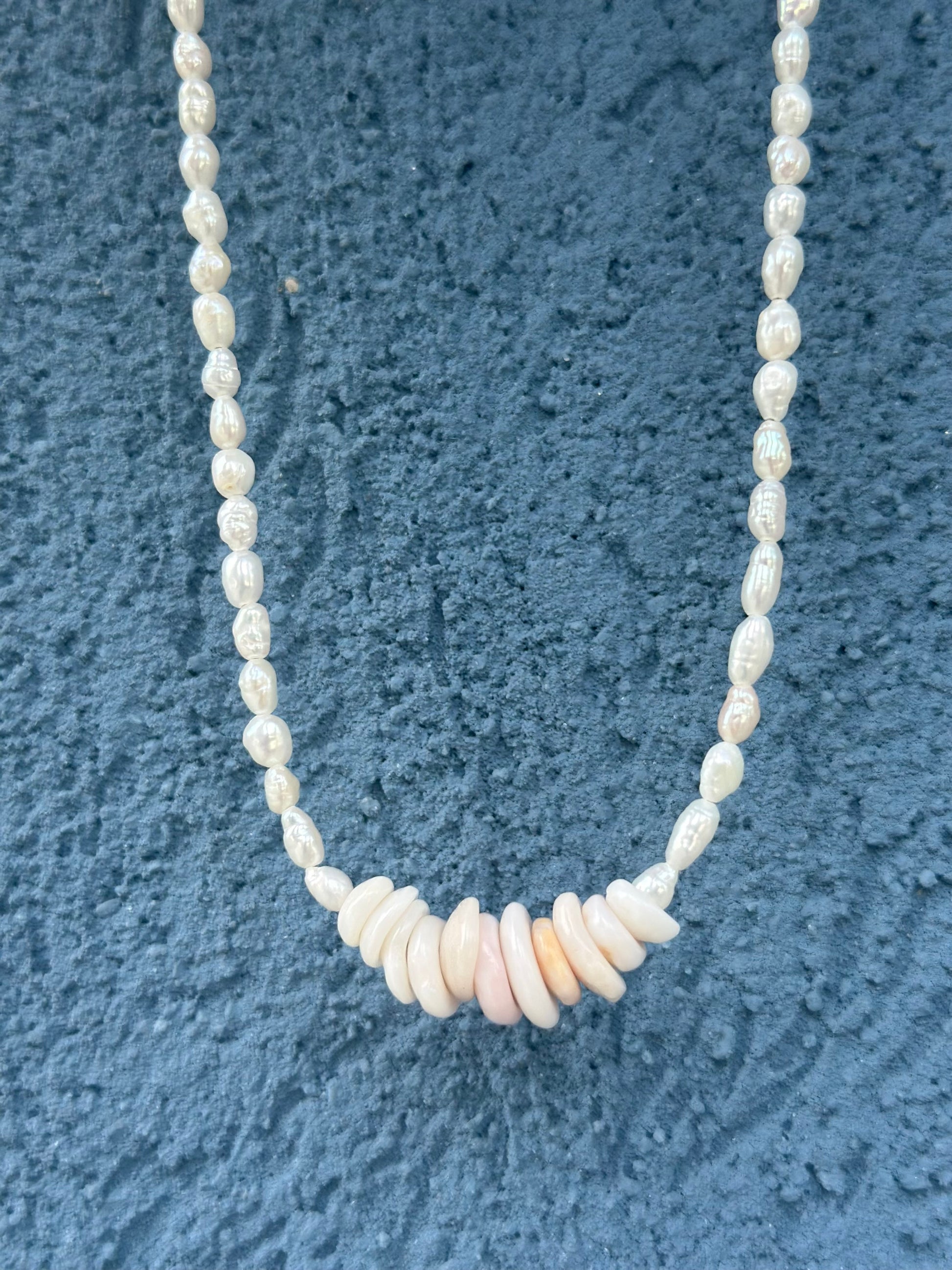 Upgrade your jewelry collection with our Pearl + Puka Collar Necklace. Made with 18" freshwater pearls, this necklace adds elegance and sophistication to any outfit. Discover the luxurious and timeless beauty of this necklace today.