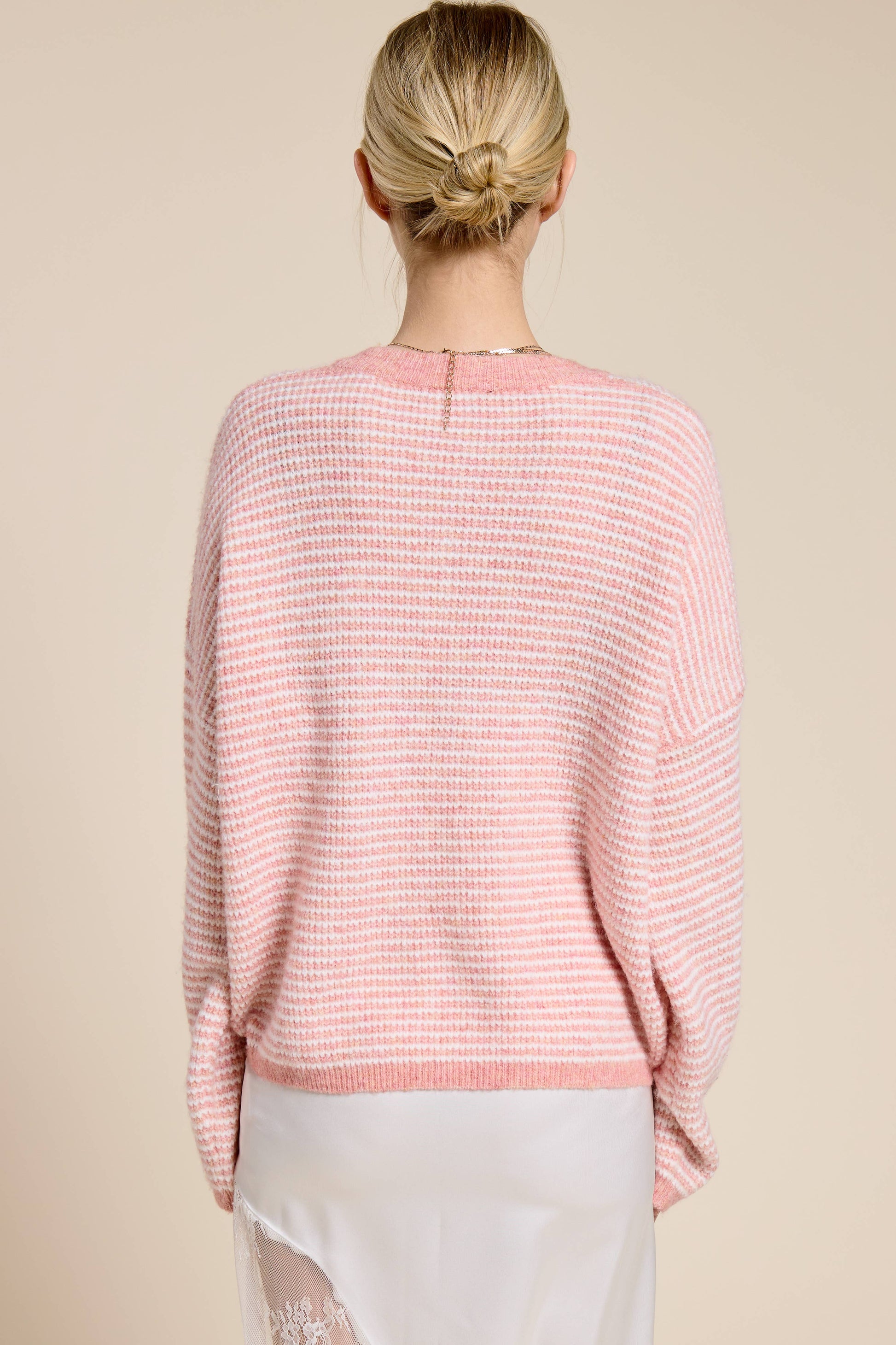 Lola Striped V Neck Sweater | Blush